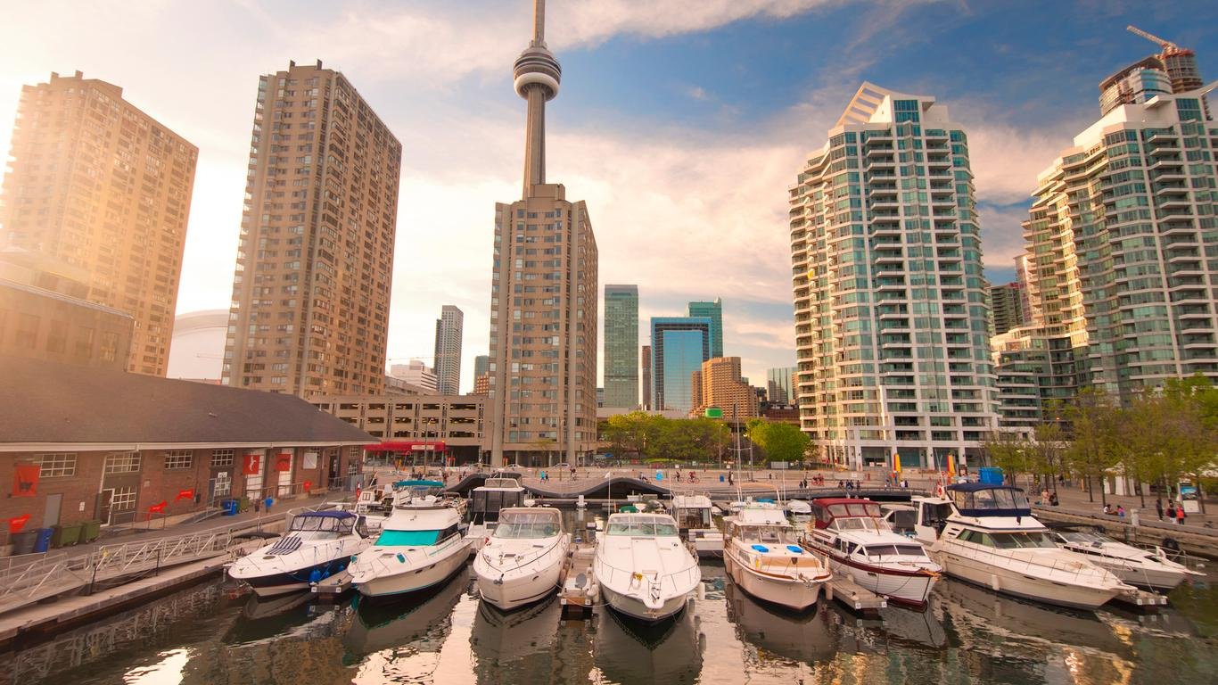 It's known for its cluster of towering condo buildings offering stunning city and lake views. Canoe Landing Park, designed by artist Douglas Coupland, provides a green space with trails and sculptures.
